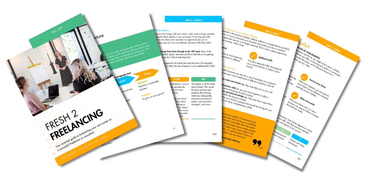 I get asked all the time about how to start life as a freelancer or consultant, and over time I’ve figured out a plan … and I want to share it with you! So I’ve created Fresh 2 Freelancing, the ultimate guide to help you to get started. And not just get started, but start ahead of the pack!